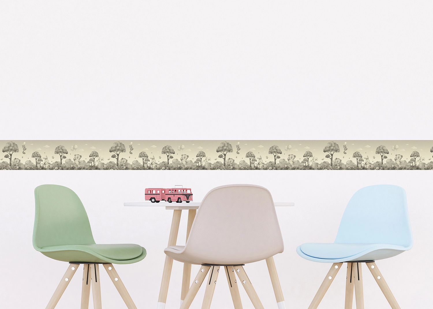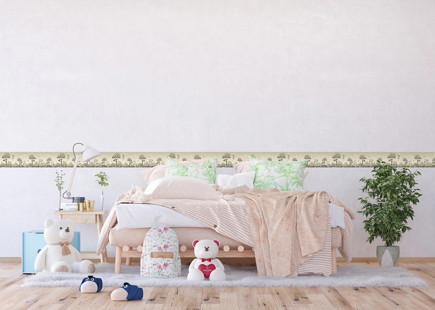 Meet an adorable Bear friends with our charming designs tailored to captivate any child. Crafted with love, every border adds a sprinkle of magic to your child’s room. Alongside our Cute Bears collection, explore our range of textile products, wall stickers, and murals to complement the theme seamlessly.