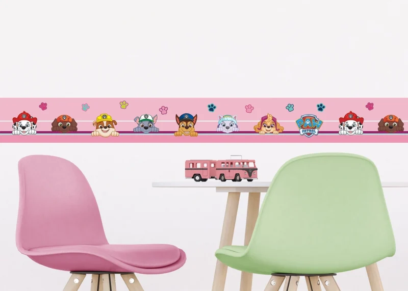 Explore adventures of brave Paw Patrol team with our charming designs, which are tailored to captivate any child. Crafted with love, each border adds a sprinkle of magic to your child’s room. Alongside our Paw Patrol wall borders, explore our range of textile products, wall stickers, and murals to complement the theme seamlessly.