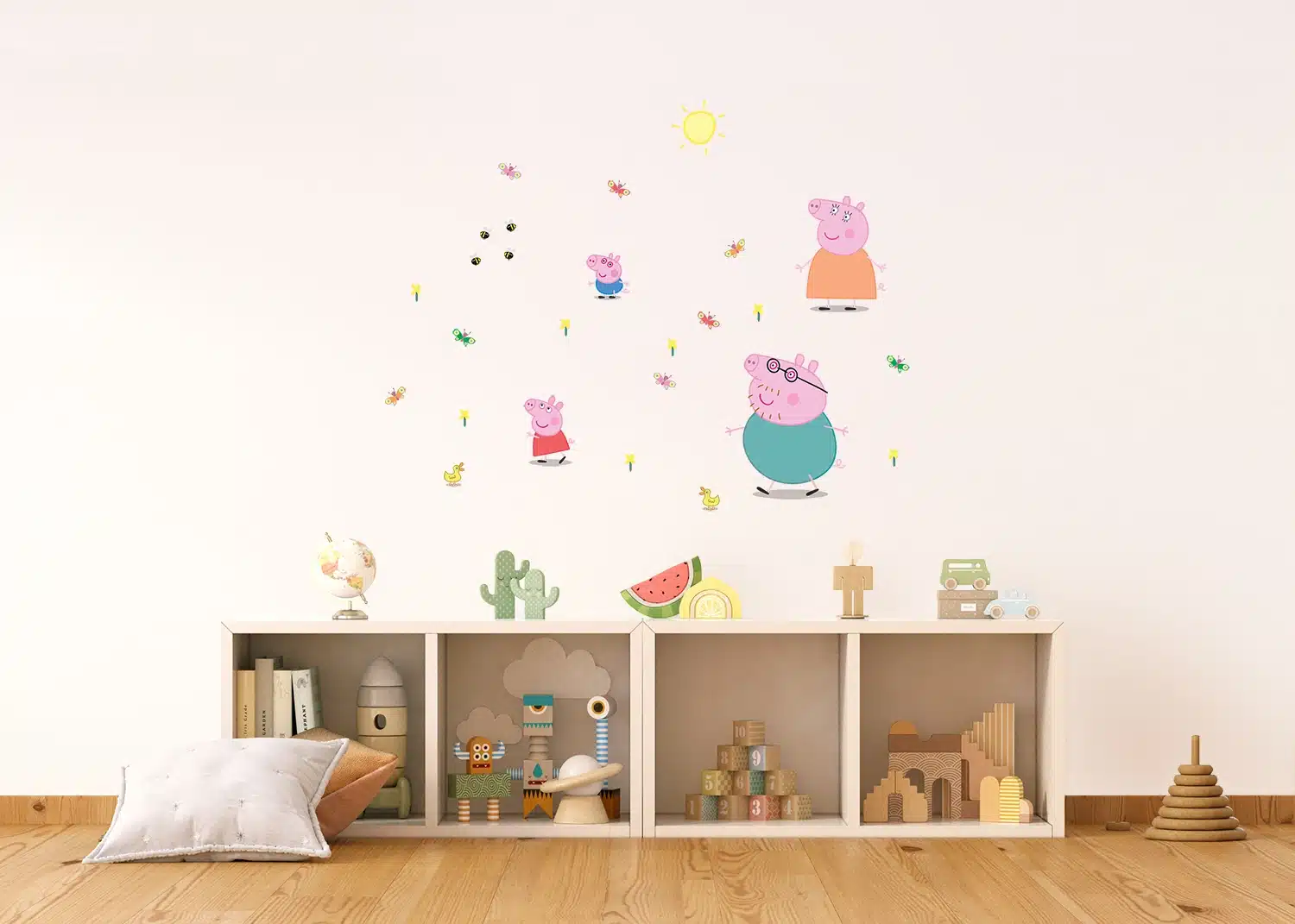 Explore different Peppa’s adventures from delightful picnics to underwater expeditions with our designs, which are tailored to captivate any child. Crafted with love, each sticker adds a sprinkle of magic to your child’s room. Alongside our Peppa Pig wall stickers, explore our range of textile products, wall borders, and murals to complement the theme seamlessly.